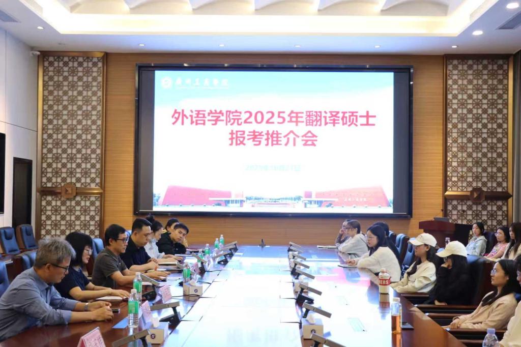广州工商学院创办于1995年,是一所有教育部批准设立的民办全日制普通本科院校,现有全日制在校生近27500人,是广东省硕士学位授予立项建设单位。该校外语学院始建于2000年,开设商务英语和日语本科专业,在校生2800余人。此次我院应邀到该校推介MTI招生情况,对吸引优质生源、扩大社会影响具有积极意义。